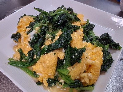 冷凍のほうれん草だけど、バターをたっぷり使って、卵も入れた料理がこちら。