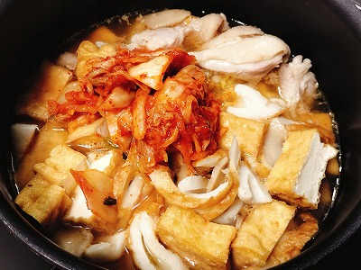 元のレシピは、キムチの素を使った味付けのお汁に