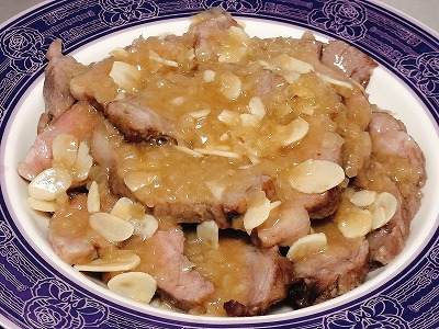 肩ロースのお値段は約600gで850円。玉ねぎが50円として、約900円のお料理。
