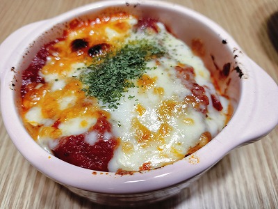トマトにチーズがかかっている。このような料理はいまがわがつくったことも、教えたことももちろん、ない!